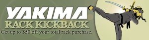 The rebate program will be running from August 15th until August 31st so if you are considering the purchase of any rack equipment or a cargo box…now is the time to do it. Yakima won’t offer deals like this until sometime NEXT YEAR!