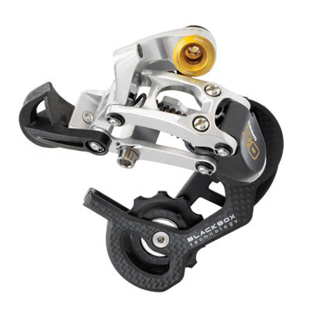 I’ve been a SRAM user for years…even back in the day when they were called ‘Gripshift’ and only a few bikes had those new suspension fork thingys. I run SRAM on my race and trail bikes, and the accuracy and reliability of the crisp shifting has been something that I’ve grown accustomed too. The SRAM XO Rear Derailleur (offered here in the 8/9 speed short cage version) is not only lighter than it’s competitor (at 192 grams), but it’s carbon cage and gold bolt make it stand out on your bike. When matched with the SRAM XO Twist Shifters or the SRAM XO Trigger Shifters this little unit makes shifting your bike an almost intutive process.