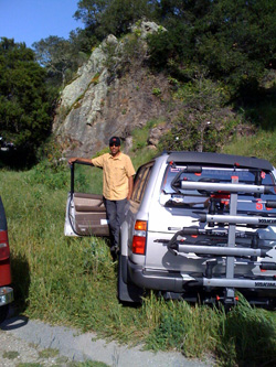 Sporting the combined Yakima HoldUp Hitch Mounted Bike Rack and the HoldUp Plus 2 Bike Add-on, Sean and his compatriot triathletes competed in the fast CSU Collegiate Desert Triathlon.