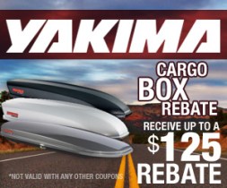 As convenient as cargo boxes are, they do come with a bit of a price tag. Luckily, Yakima is currently offering a great rebate program on all of their cargo boxes that offers up to $125 cash back on your next cargo box purchase from now until March 22! We’ve just updated our site with several of Yakima’s SkyBox series, and we will be sweetening the deal by also offering free shipping.